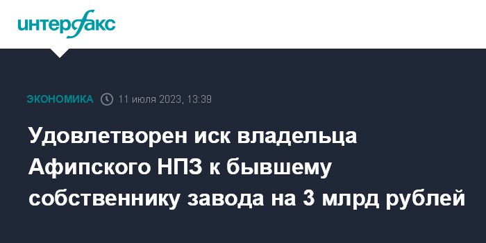 Удовлетворен иск владельца Афипского НПЗ к бывшему собственнику завода на 3 млрд рублей