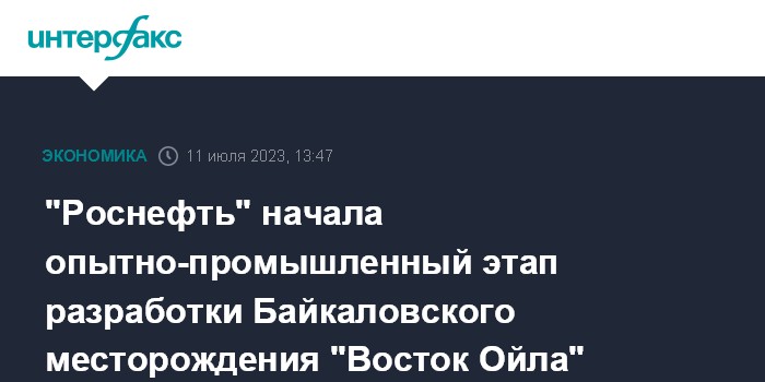 "Роснефть" начала опытно-промышленный этап разработки Байкаловского месторождения "Восток Ойла"