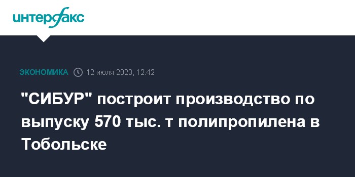 "СИБУР" построит производство по выпуску 570 тыс. т полипропилена в Тобольске