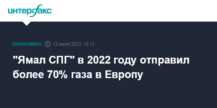 Москва. 12 июля. INTERFAX.RU - Проект "Ямал СПГ" в 2022 году направил свыше 16 млн т сжиженного природного газа (СПГ) в Европу, сообщила на "Иннопроме-2023" директор представительства "Росатома" в Уральском федеральном округе Анна Ленская.