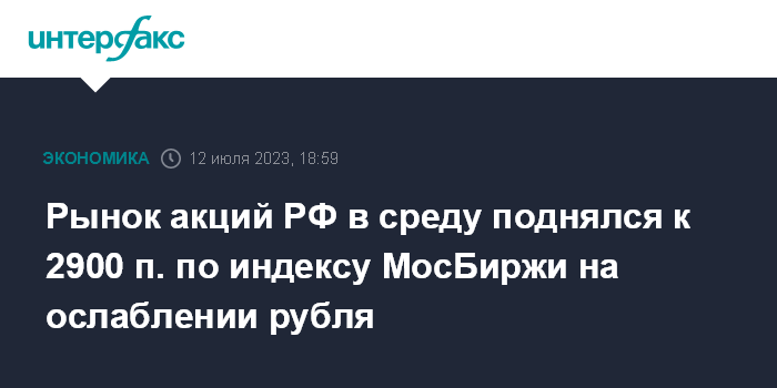 Рынок акций РФ в среду поднялся к 2900 п. по индексу МосБиржи на ослаблении рубля