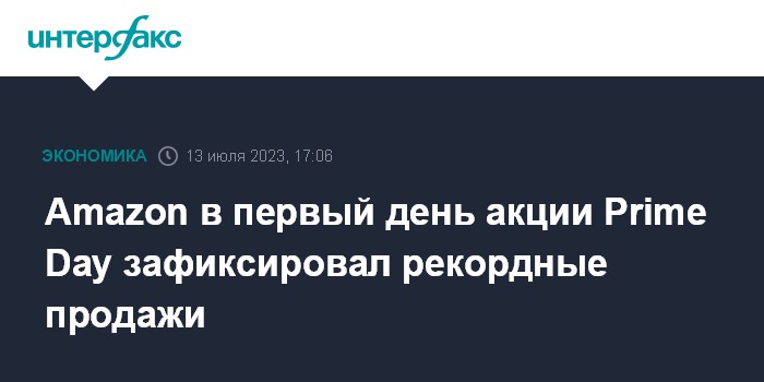 Москва. 13 июля. INTERFAX.RU - Amazon.com Inc. в первый день двухдневной акции Prime Day зафиксировал рекордный объем продаж за всю свою историю, говорится в сообщении онлайн-ритейлера.