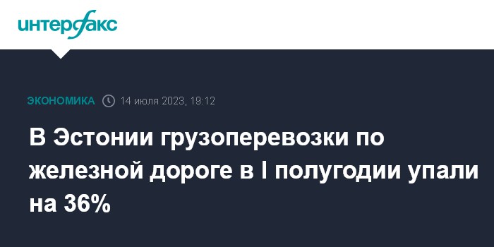 Москва. 14 июля. INTERFAX.RU - Грузоперевозки по инфраструктуре Eesti Raudtee ("Эстонская железная дорога") в январе-июне 2023 года составили 2,8 млн тонн, что почти на 36% меньше, чем за аналогичный период 2022 года, сообщил BNS руководитель пресс-службы предприятия Пауль-Хенри Середа.