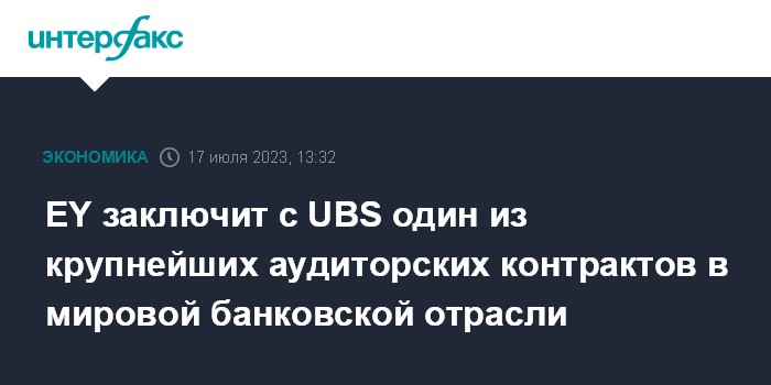 Москва. 17 июля. INTERFAX.RU - Компания EY будет аудитором швейцарского UBS после его объединения с Credit Suisse, а соответствующий контракт станет одним из крупнейших в банковской отрасли, пишет Financial Times.