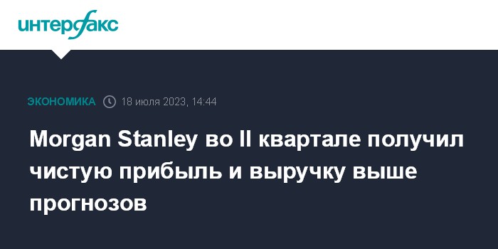 Москва. 18 июля. INTERFAX.RU - Morgan Stanley, один из крупнейших банков США, во втором квартале получил чистую прибыль и выручку выше прогнозов.