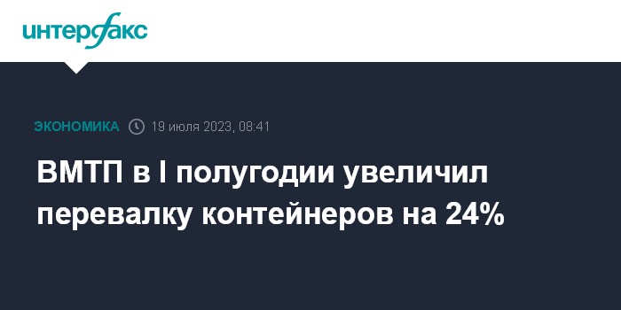 Москва. 19 июля. INTERFAX.RU - ПАО "Владивостокский морской торговый порт" (ВМТП, основная стивидорная компания в порту "Владивосток", входит в транспортную группу FESCO) в январе-июне 2023 года увеличило перевалку контейнеров на 24% в годовом исчислении - до 429 987 TEU, сообщили "Интерфаксу" в пресс-службе FESCO.