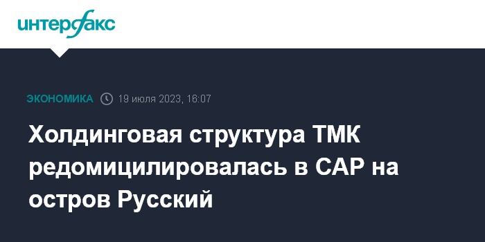 Холдинговая структура ТМК редомицилировалась в САР на остров Русский
