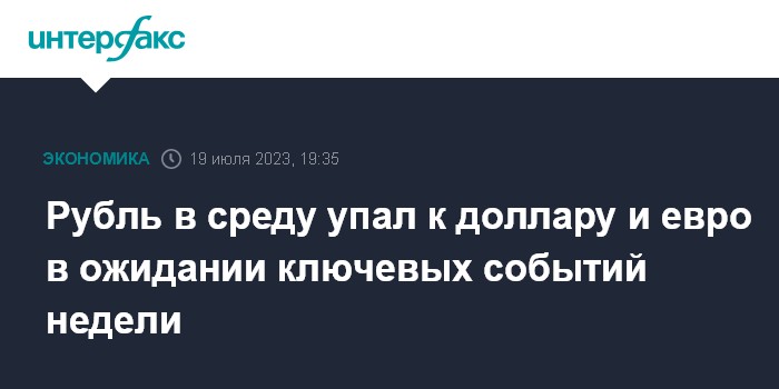 Как отмечают эксперты "Интерфакс-ЦЭА", рубль упал к доллару и евро по итогам среды на фоне ожидания итогов ближайших заседаний ведущих мировых центробанков, которые состоятся до конца месяца. Кроме того, участники рынка анализировали свежие данные Федеральной таможенной службы (ФТС) о внешнеторговом балансе РФ за первое полугодие 2023 года и заявление врио главы ФТС Руслана Давыдова о восстановлении показателей импорта.