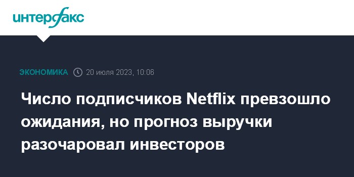 Число подписчиков Netflix превзошло ожидания, но прогноз выручки разочаровал инвесторов