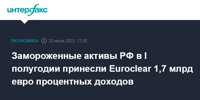 Москва. 20 июля. INTERFAX.RU - Международный депозитарий Euroclear по итогам первого полугодия 2023 года получил 1,743 млрд евро в виде процентных доходов от инвестирования заблокированных российских активов, говорится в отчете компании.