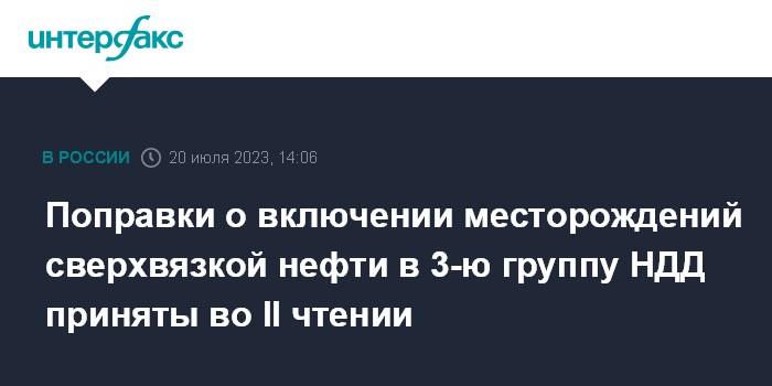 Поправки о включении месторождений сверхвязкой нефти в 3-ю группу НДД приняты во II чтении
