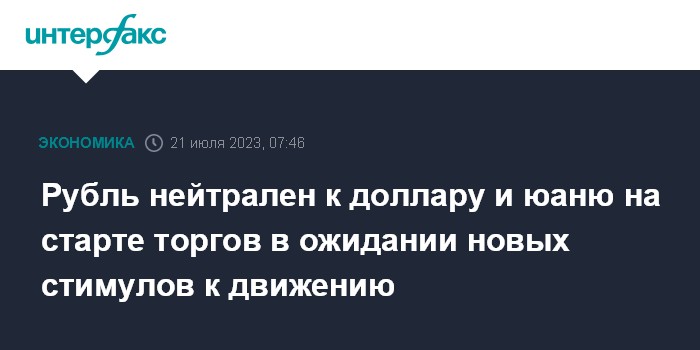 Рубль нейтрален к доллару и юаню на старте торгов в ожидании новых стимулов к движению