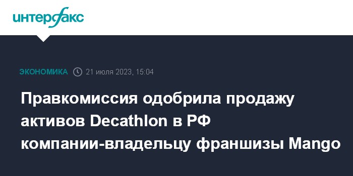 Правкомиссия одобрила продажу активов Decathlon в РФ компании-владельцу франшизы Mango