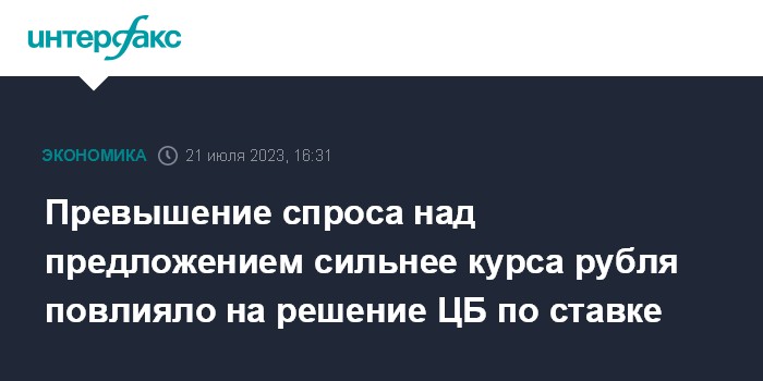 Превышение спроса над предложением сильнее курса рубля повлияло на решение ЦБ по ставке