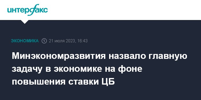 Минэкономразвития назвало главную задачу в экономике на фоне повышения ставки ЦБ