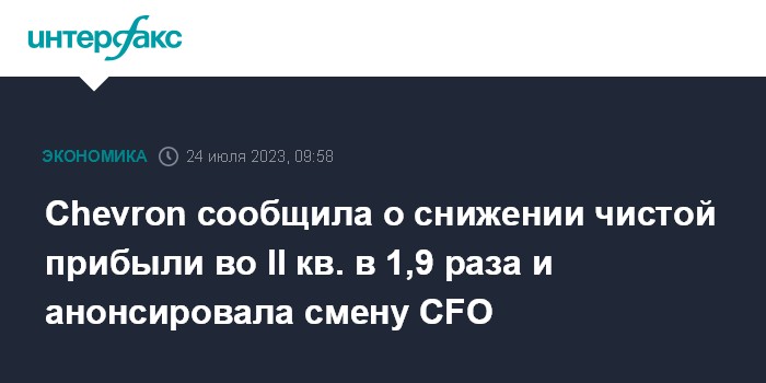 Chevron сообщила о снижении чистой прибыли во II кв. в 1,9 раза и анонсировала смену CFO