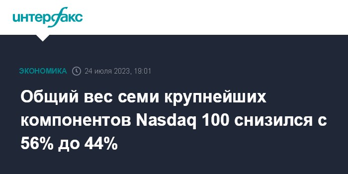 Общий вес семи крупнейших компонентов Nasdaq 100 снизился с 56% до 44%