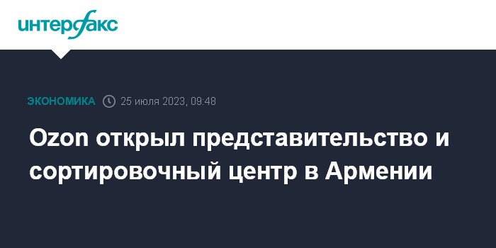 Москва. 25 июля. INTERFAX.RU - Маркетплейс Ozon сообщил, что открыл представительство и запустил сортировочный центр в Ереване.