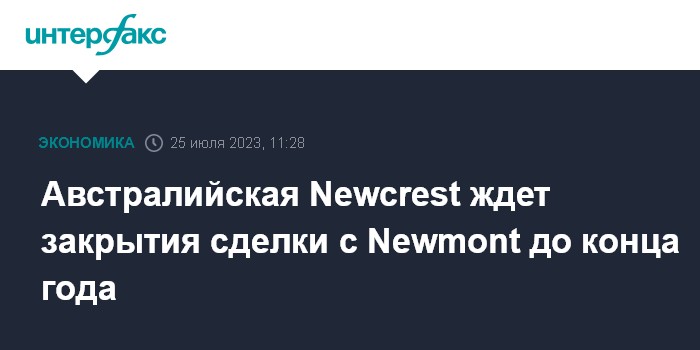 Москва. 25 июля. INTERFAX.RU - Руководство австралийской Newcrest Mining Ltd. ожидает закрытия сделки по слиянию с американской золотодобывающей корпорацией Newmont Corp. до конца 2023 года, сообщила пресс-служба компании.