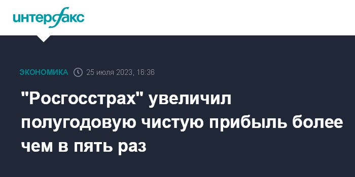 "Росгосстрах" увеличил полугодовую чистую прибыль более чем в пять раз