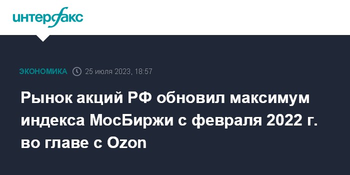 Рынок акций РФ обновил максимум индекса МосБиржи с февраля 2022 г. во главе с Ozon