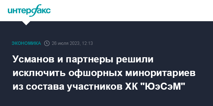 Усманов и партнеры решили исключить офшорных миноритариев из состава участников ХК "ЮэСэМ"
