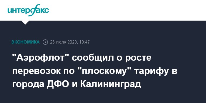 "Аэрофлот" сообщил о росте перевозок по "плоскому" тарифу в города ДФО и Калининград