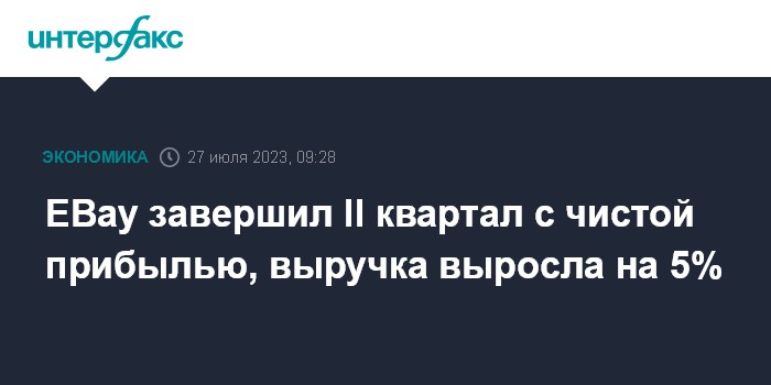 EBay завершил II квартал с чистой прибылью, выручка выросла на 5%