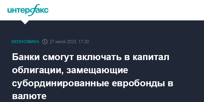 Банки смогут включать в капитал облигации, замещающие субординированные евробонды в валюте