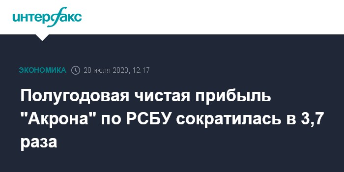 Полугодовая чистая прибыль "Акрона" по РСБУ сократилась в 3,7 раза