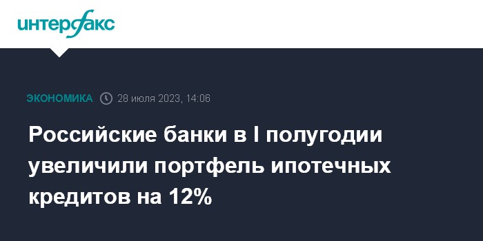 Российские банки в I полугодии увеличили портфель ипотечных кредитов на 12%