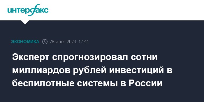 Эксперт спрогнозировал сотни миллиардов рублей инвестиций в беспилотные системы в России