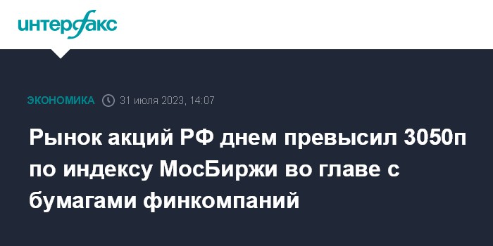 Рынок акций РФ днем превысил 3050п по индексу МосБиржи во главе с бумагами финкомпаний