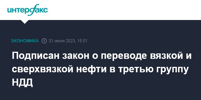 Подписан закон о переводе вязкой и сверхвязкой нефти в третью группу НДД