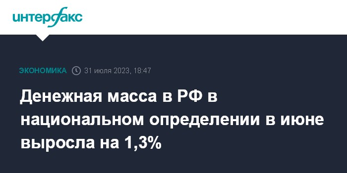 Денежная масса в РФ в национальном определении в июне выросла на 1,3%