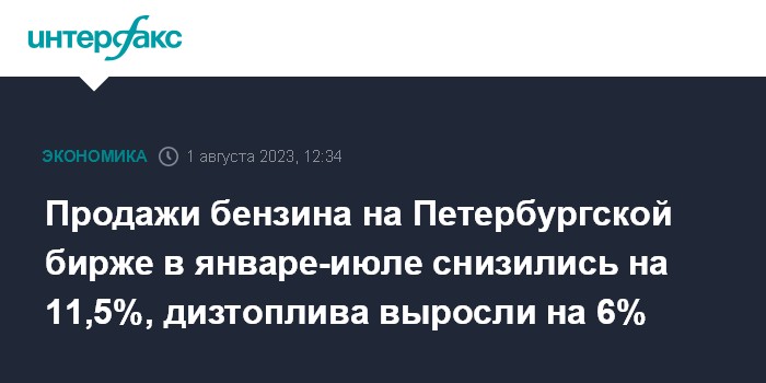 Продажи бензина на Петербургской бирже в январе-июле снизились на 11,5%, дизтоплива выросли на 6%
