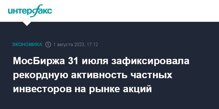 МосБиржа 31 июля зафиксировала рекордную активность частных инвесторов на рынке акций