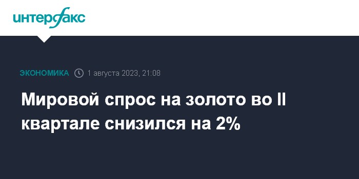 Москва. 1 августа. INTERFAX.RU - Во втором квартале 2023 года мировой спрос на золото составил 921 тысячу тонн, подсчитал World Gold Council (WGC). Это на 2% меньше, чем в апреле-июне 2022 года.
