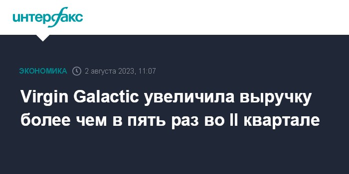 Москва. 2 августа. INTERFAX.RU - Аэрокосмическая компания британского миллиардера Ричарда Брэнсона Virgin Galactic нарастила выручку во втором квартале более чем в пять раз, но показатель не оправдал прогнозы рынка.