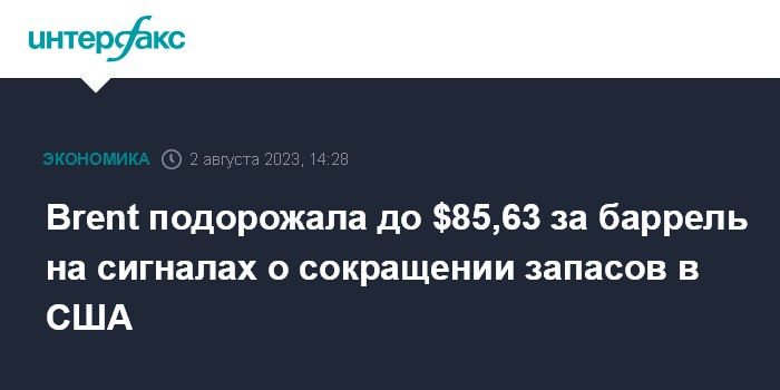 Brent подорожала до $85,63 за баррель на сигналах о сокращении запасов в США