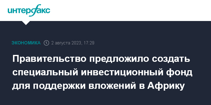 Правительство предложило создать специальный инвестиционный фонд для поддержки вложений в Африку