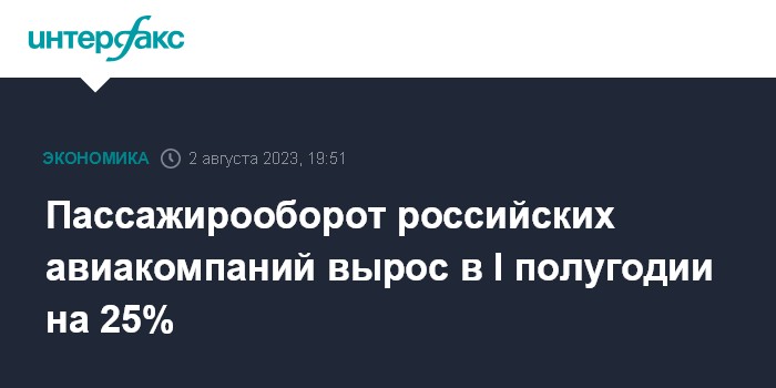 Пассажирооборот российских авиакомпаний вырос в I полугодии на 25%