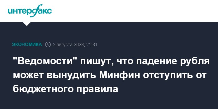 "Ведомости" пишут, что падение рубля может вынудить Минфин отступить от бюджетного правила