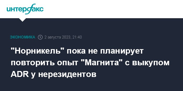 "Норникель" пока не планирует повторить опыт "Магнита" с выкупом ADR у нерезидентов
