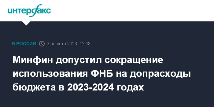 Минфин допустил сокращение использования ФНБ на допрасходы бюджета в 2023-2024 годах