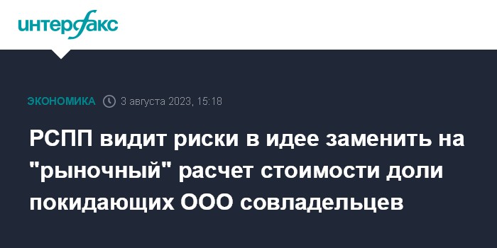 РСПП видит риски в идее заменить на "рыночный" расчет стоимости доли покидающих ООО совладельцев