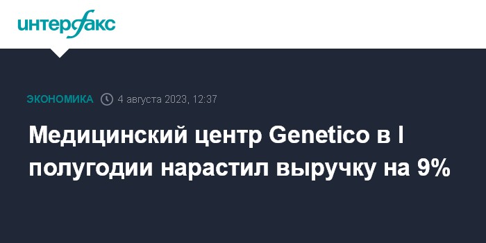 Медицинский центр Genetico в I полугодии нарастил выручку на 9%