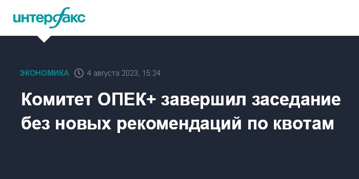 Москва. 4 августа. INTERFAX.RU - Министерский мониторинговый комитет ОПЕК+ (JMMC) завершил очередное заседание, назначив следующее на 4 октября, говорится в пресс-релизе ОПЕК.