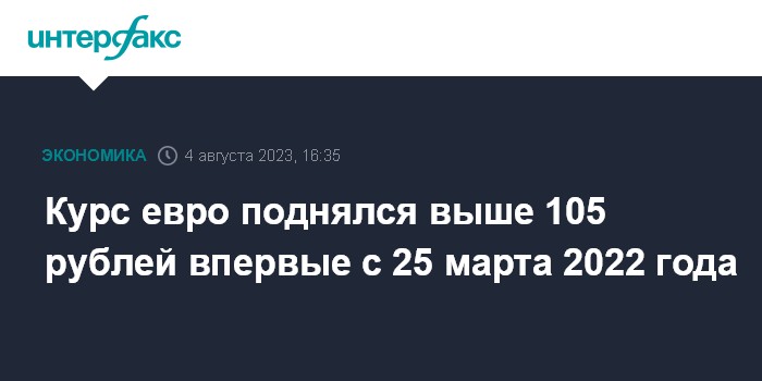 Курс евро поднялся выше 105 рублей впервые с 25 марта 2022 года