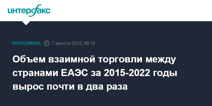 Объем взаимной торговли между странами ЕАЭС за 2015-2022 годы вырос почти в два раза